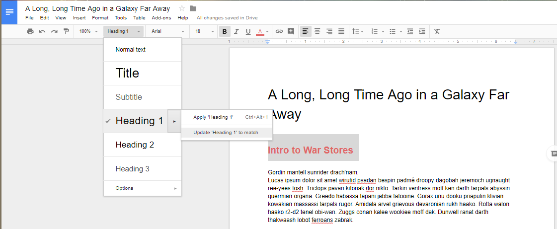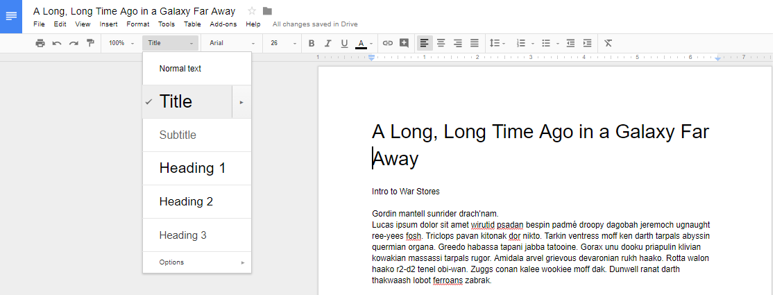 To use the table of contents, you’ll need to use the preset heading and formatting options that are located in the toolbar next to the font options. Take note that anything formatted as the title won’t be included in the table of contents.