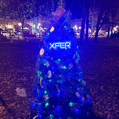 We're proud to support this community event, and our tree is now officially on display! If you head downtown, you can find the XFER sparkle at the corner of Ann Arbor Trail and Main Street, just a hop-skip southwest of the fountain. Our tree is one of over 100 decorated by local businesses, right alongside the dedicated Memorial Tree Section.